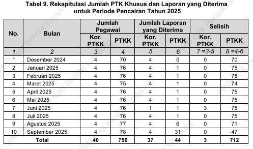 BPK mencatat realisasi pembayaran honorarium PTK Khusus mencapai Rp3,68 miliar hingga Oktober 2025. Koordinator menerima honor Rp8 juta per bulan, sementara anggota memperoleh Rp5 juta per bulan.